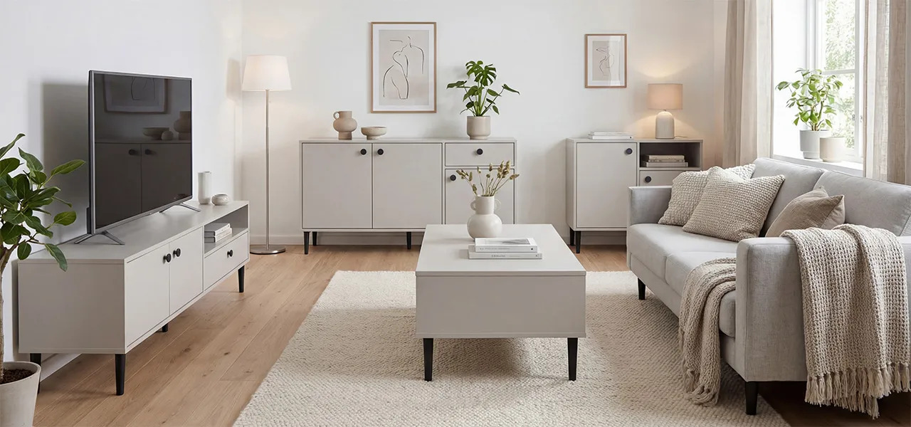 Hetki – kotimainen kalustemallisto on suunniteltu suomalaiseen arkeen tuomaan kotiin selkeyttä ja järjestystä. Mallistosta löydät sirot yöpöydät, käytännölliset lipastot, tilavat senkit sekä modernit tv-tasot – kaikki samaa rauhallista muotokieltä noudattaen.