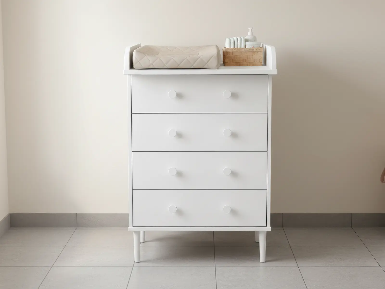 Tukeva hoitopöytä tekee vauvan hoidosta turvallista ja mukavaa. Kotimainen Nyytti lipasto neljällä laatikolla ja hoitotasolla. Mitoitus suunniteltu lapsiperheen tarpeisiin, hoitotasolle sopii hoitoalustan lisäksi tarvittavat vaipat ja pesutarpeet.