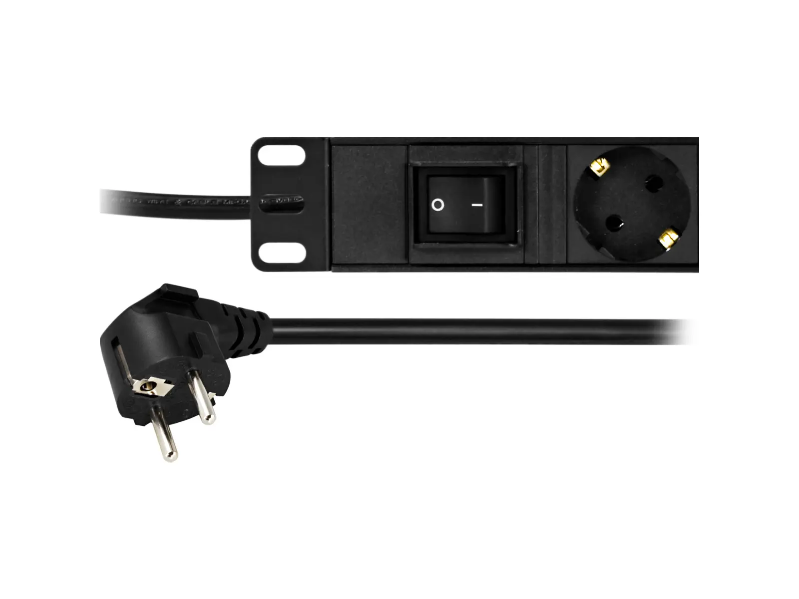 Virtapaneeli, 8 x CEE 7/3 -pistorasiaa, 1 x CEE 7/7 -liitäntä, kytkin, 1U, 3 m kaapeli, musta