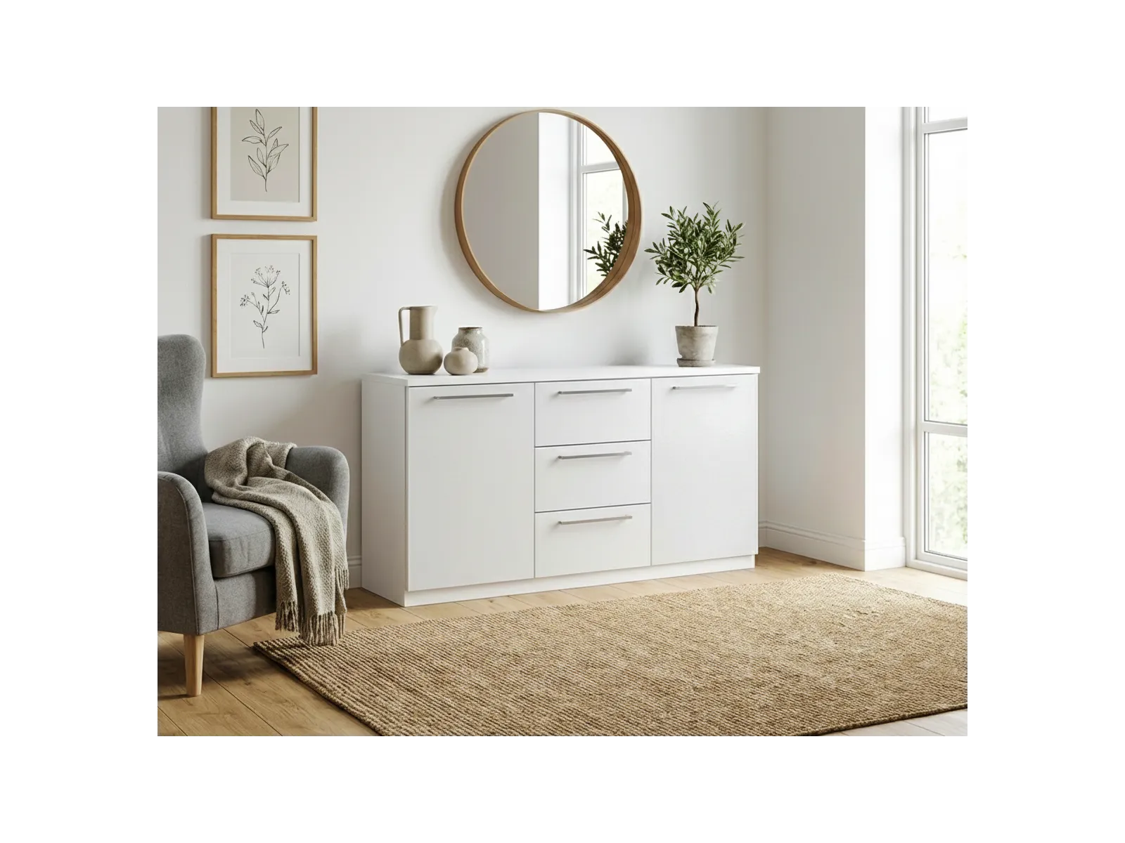 Valkoinen Havi Senkki 2 ovella ja 3 laatikolla sopii Suomalaiseen kotiin.