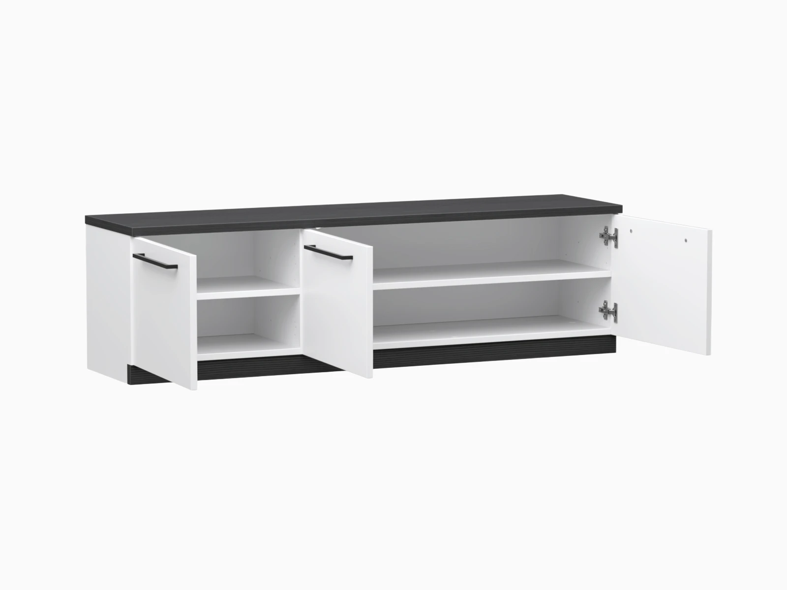 135 cm leveä tv-taso kolmella kaapilla