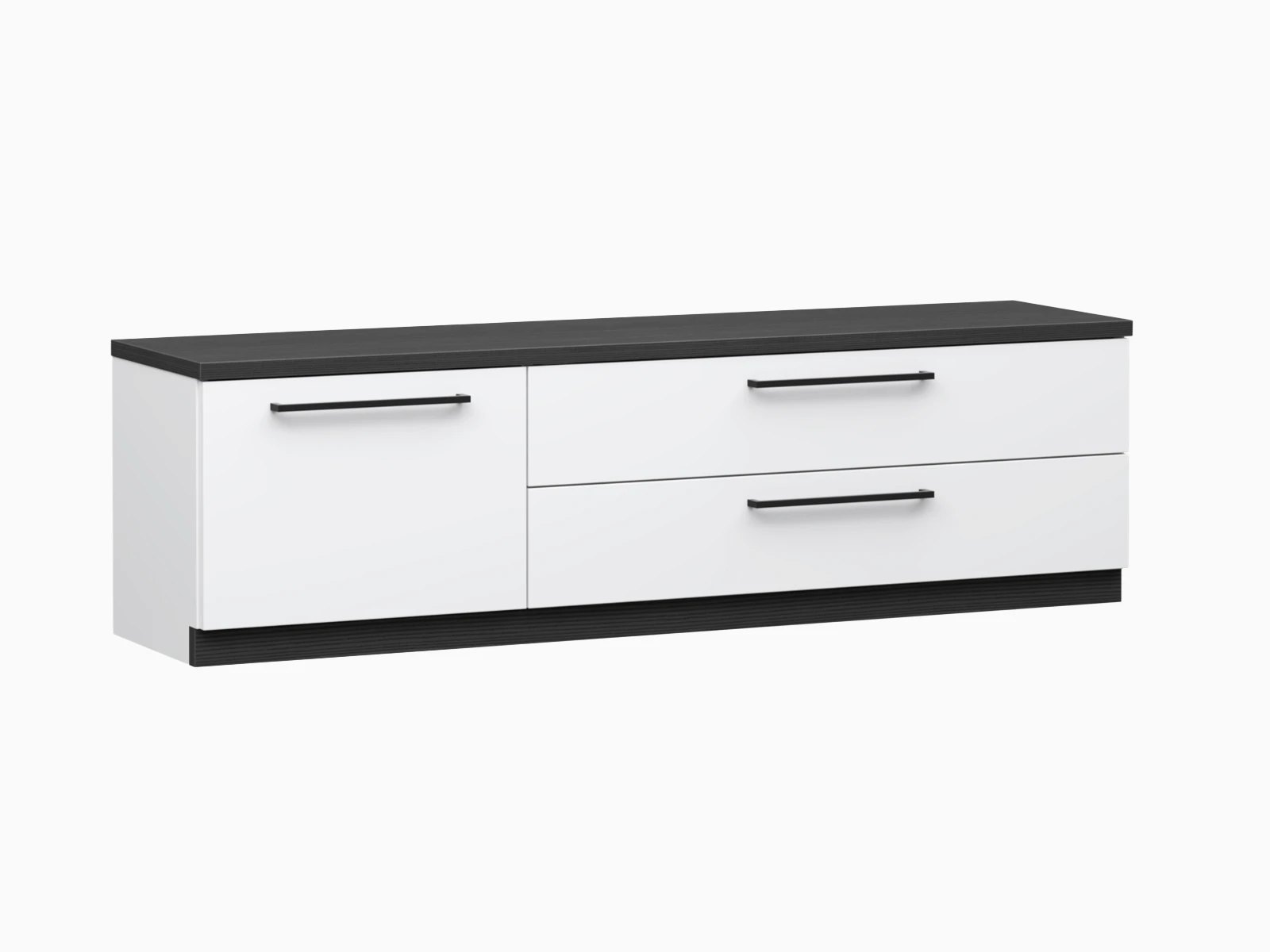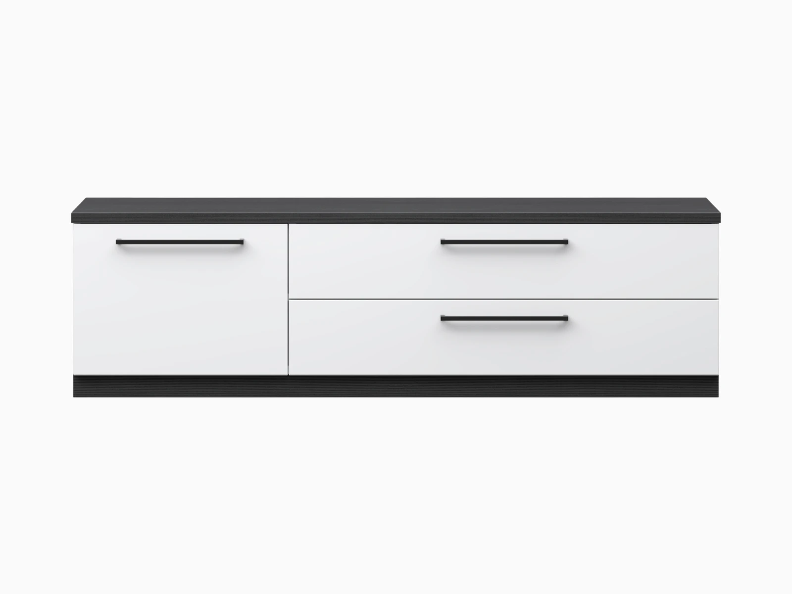 Upea ja ajaton skandinaavinen design tekee mustaa ja valkoista yhdistävästä Havi tasosta pitkäaikaisen katseenvangitsijan olohuoneen säilytyskalusteena ja tv-tasona. Siro mutta ryhdikäs taso sopii kaikkeen säilytykseen, tilava kaappi äänettömästi sulkeutuvan oven takana sekä kevyesti liukuva laatikko tuovat paljon kaivattua säilytystilaa mihin tahansa huoneeseen. Tason korkeus on juuri sopiva television alustaksi, jonka ansiosta katselukulma on optimaalinen sohvalta katsoessa. Laadukkaisiin mustaksi maalattuihin metallivetimiin on aina ilo tarttua ja linjakas reunasta reunaan ulottuva sokkelilista kruunaa upean kokonaisuuden. Kannen ja sokkelin väri on eläväinen woodline musta, jonka sävy elää harmaan ja mustan välillä valaistuksesta riippuen.