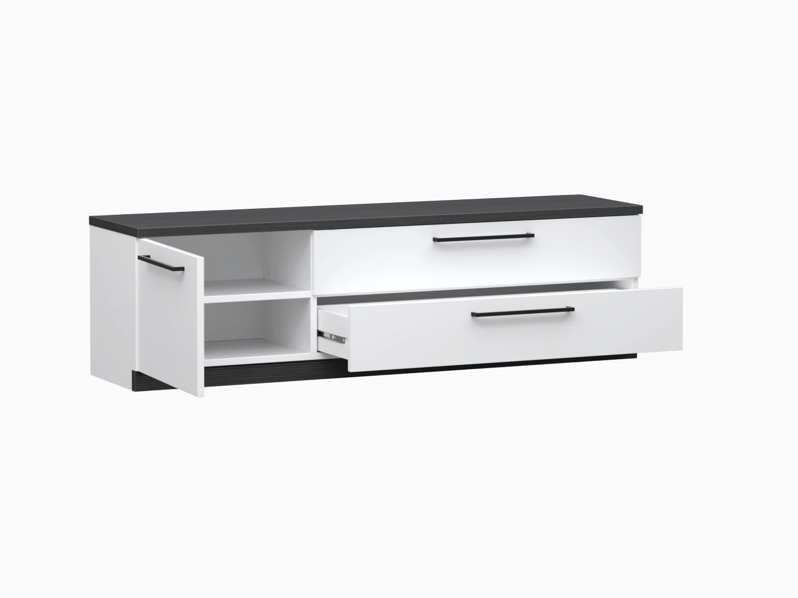 Musta-valkoinen Havi tv-taso sopii Suomalaiseen kotiin.