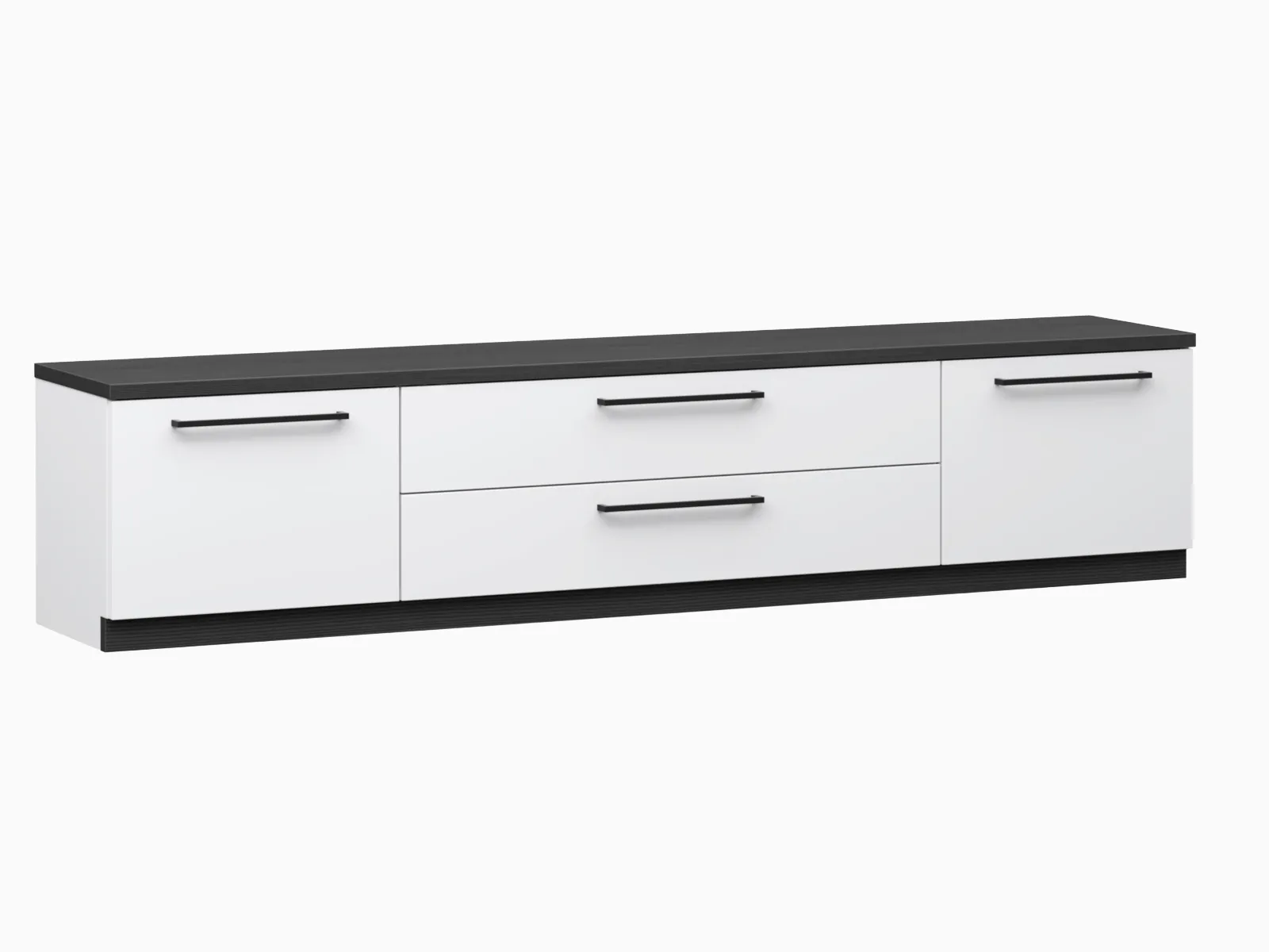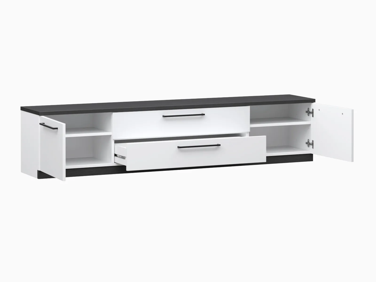 180 cm leveä tv-taso kahdella kaapilla ja tilavilla laatikoilla