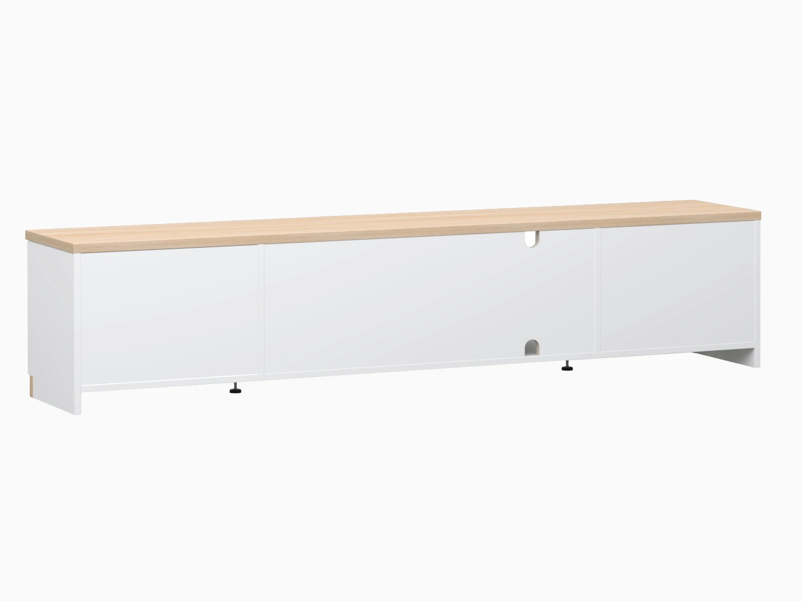 Kaunis ja ajaton skandinaavinen design tekee tammea ja valkoista yhdistävästä Havi tasosta pitkäaikaisen katseenvangitsijan olohuoneen säilytyskalusteena ja tv-tasona. Leveä taso sopii kaikkeen säilytykseen, tilavat kaapit äänettömästi sulkeutuvien ovien takana sekä avo-osa soveltuu tasoksi mihin tahansa huoneeseen. Tason korkeus on juuri sopiva television alustaksi, jonka ansiosta katselukulma on optimaalinen sohvalta katsellessa. Laadukkaisiin kromipintaisiin metallivetimiin on aina ilo tarttua ja linjakas reunasta reunaan ulottuva sokkelilista kruunaa upean kokonaisuuden.