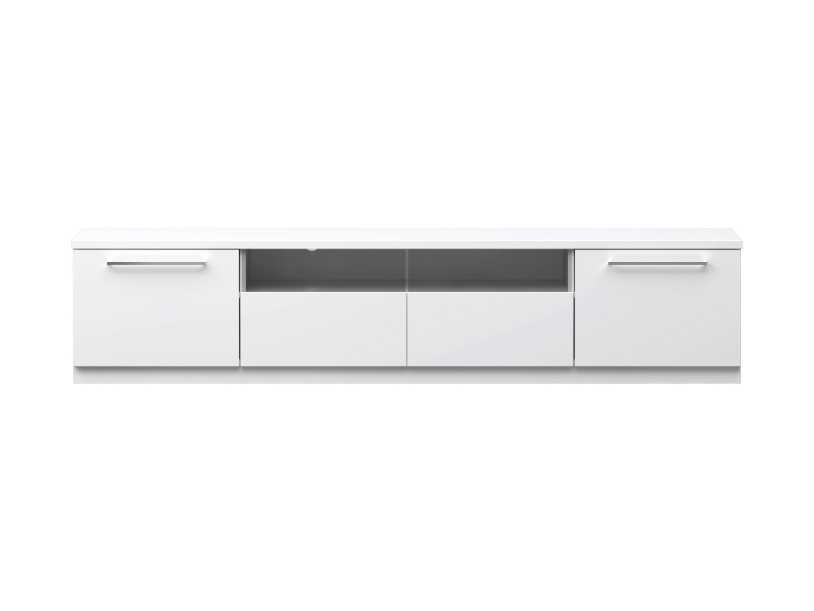180 cm leveä tv-taso kahdella kaapilla ja lasilaatikolla