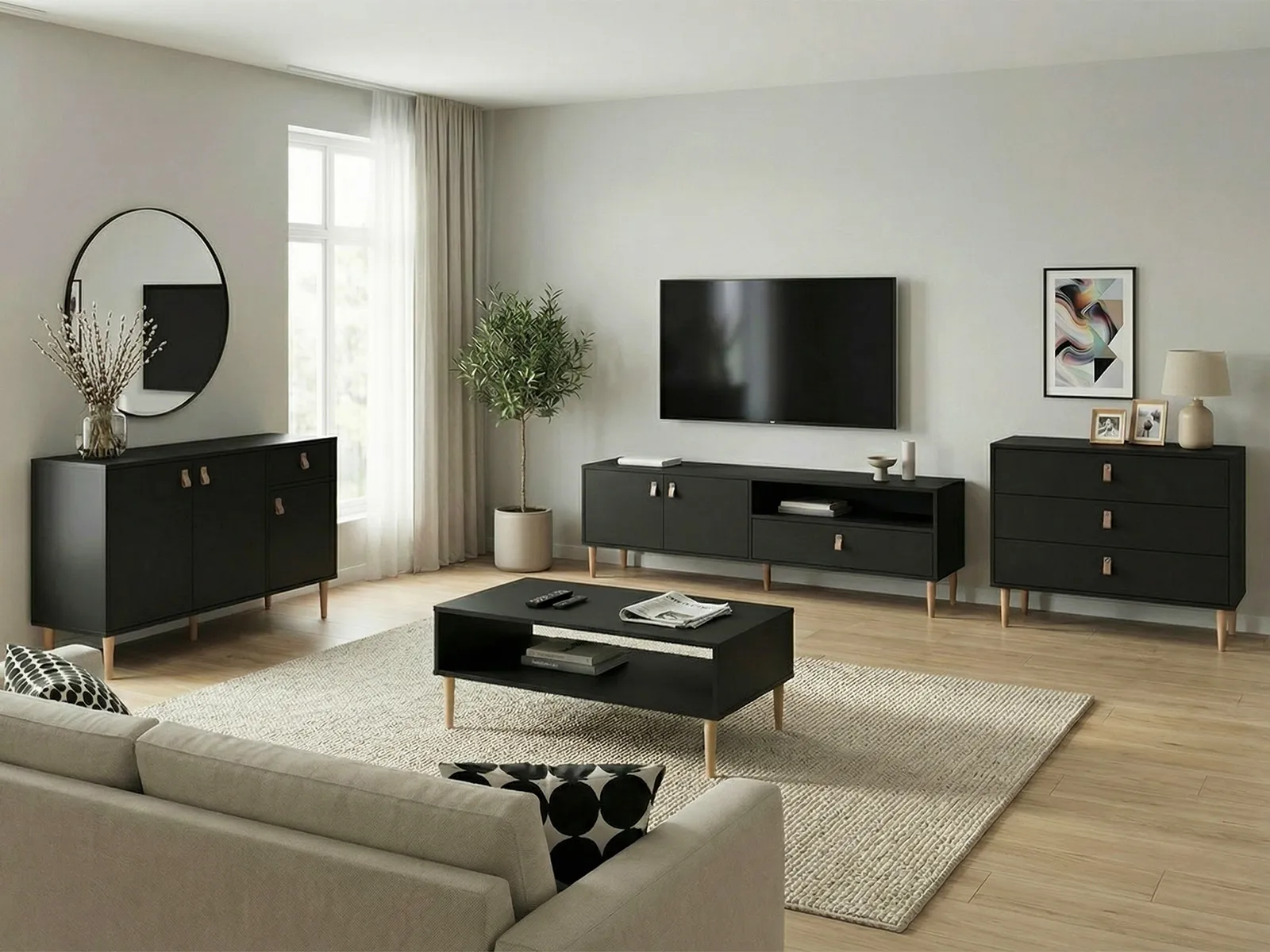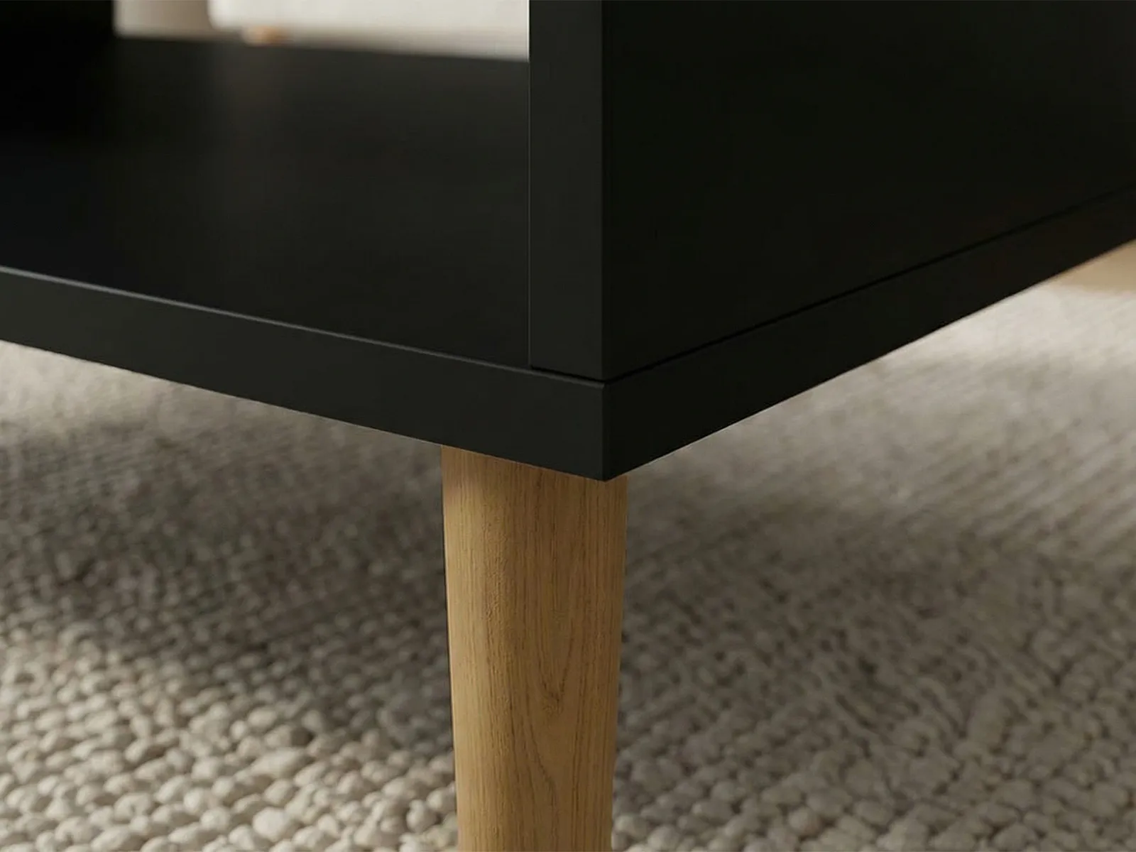 Sohvapöydän jalat ovat vaihdettavissa kaupan valikoimasta, joten voit viimeistellä pöydän juuri omaan sisustukseen sopivaksi. Näin sama runko mukautuu eri tyyleihin – kevyestä skandinaavisesta ilmeestä modernimpaan kokonaisuuteen.