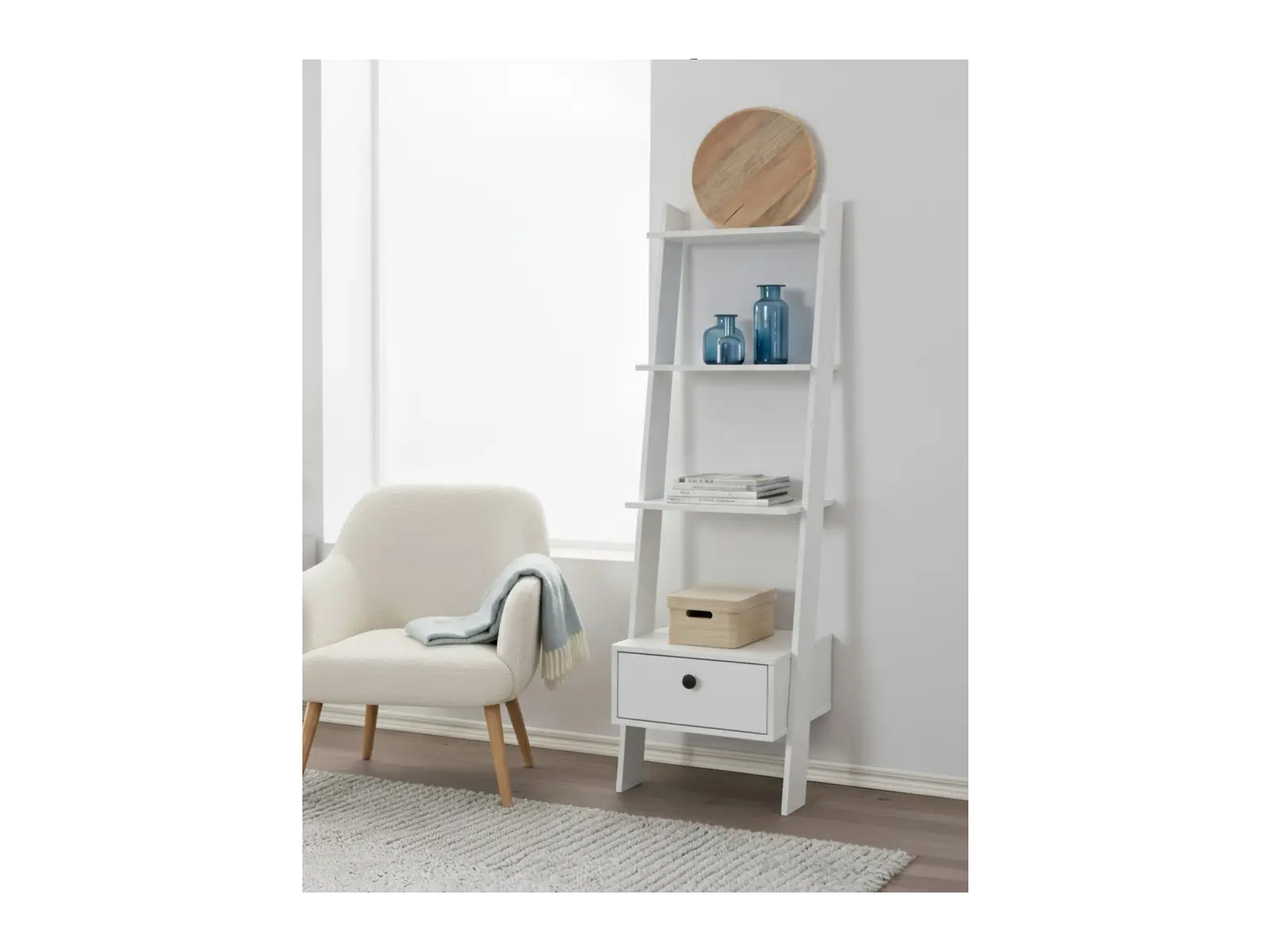 Kolme avointa tasoa tarjoavat paikan kirjoille, viherkasveille ja koriste-esineille. Selkeä muotoilu ja kompakti leveys tekevät kalusteesta helposti sijoitettavan myös pienempiin tiloihin.