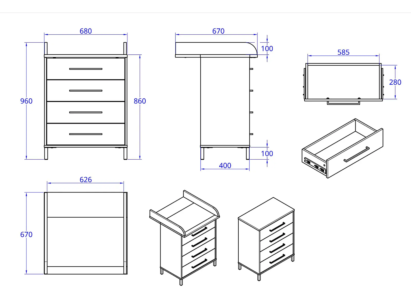 Kun hoitotasoa ei enää tarvita, sen voi irrottaa ja käyttöön jää siistin kokoinen nelilaatikkoinen lipasto. Ajaton muotoilu ja neutraali väritys tekevät siitä helposti sijoitettavan makuuhuoneeseen, eteiseen tai lastenhuoneeseen myös myöhemmin.