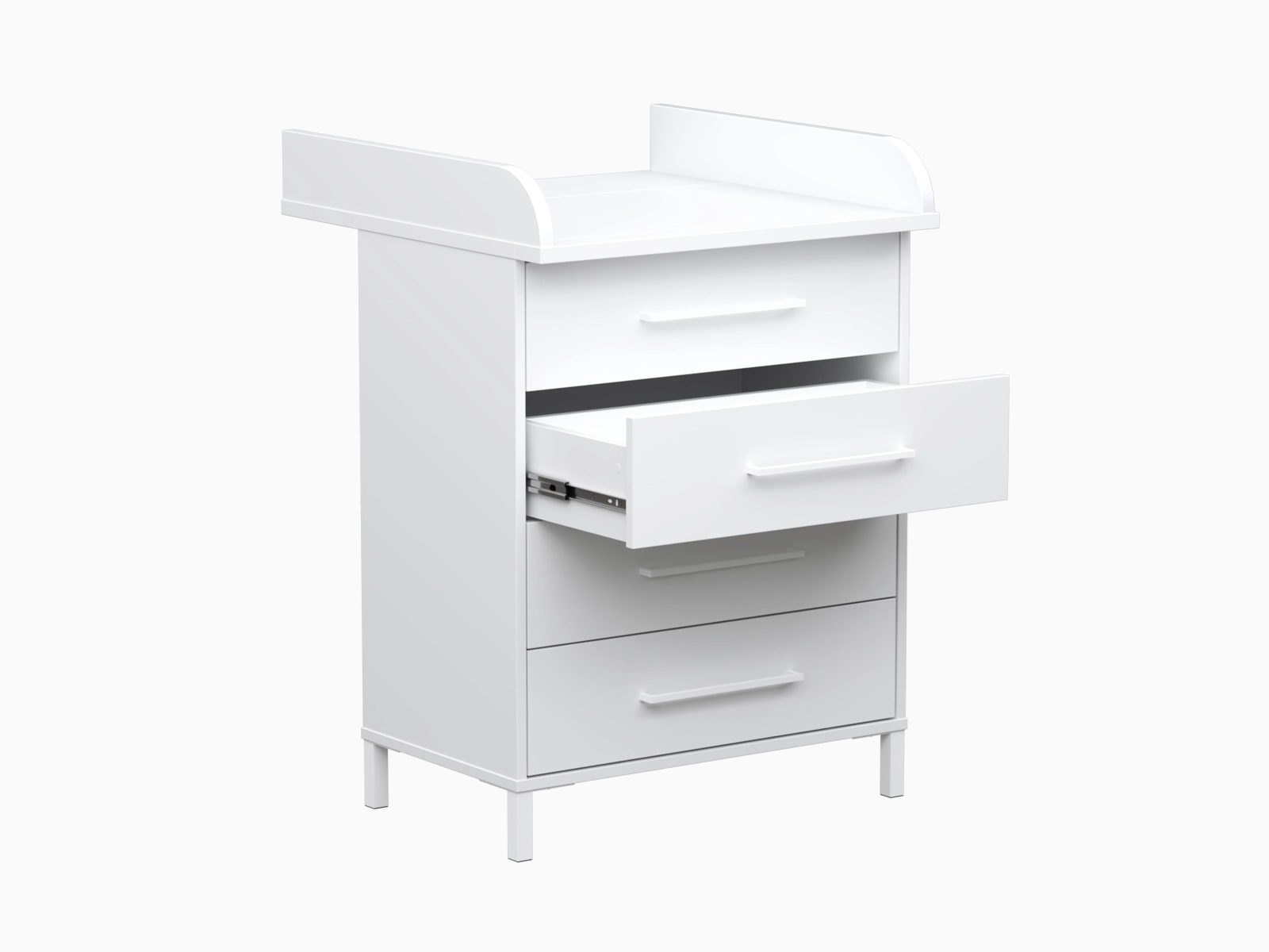 Hoitotaso on suunniteltu niin, että hoitoalustan lisäksi tasolle jää tilaa vaipoille ja pesutarvikkeille. Sivulaidat tuovat lisäturvaa, ja etukulmat on pyöristetty lapsiystävällisiksi.