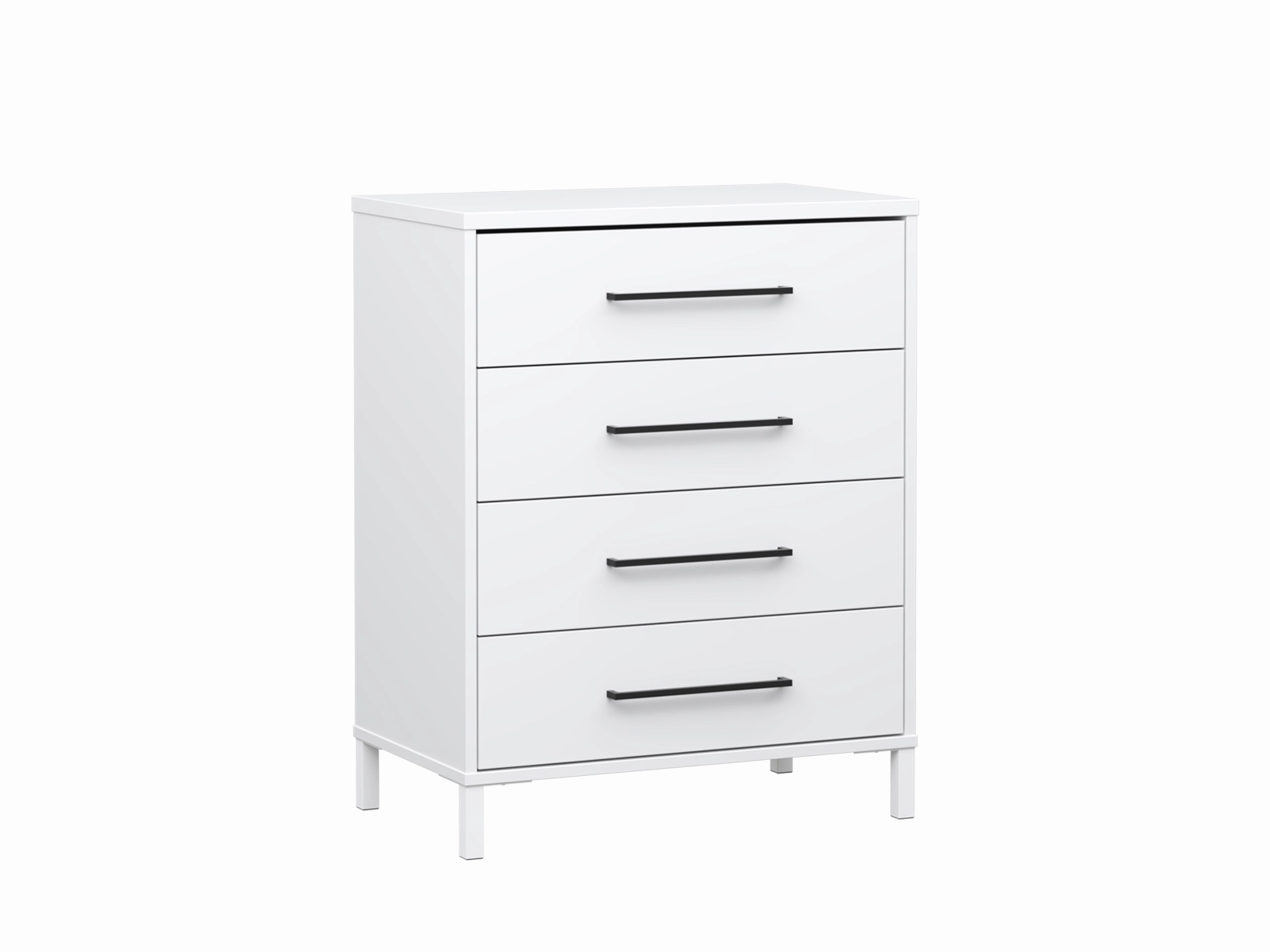 Valkoinen runko ja metallijalat yhdistettynä mustiin suoriin vetimiin tuo lipastoon selkeän ja modernin kontrastin. Ilme on ryhdikäs ja ajaton, ja sopii hyvin myös muuhun kodin käyttöön hoitotason poistamisen jälkeen.
