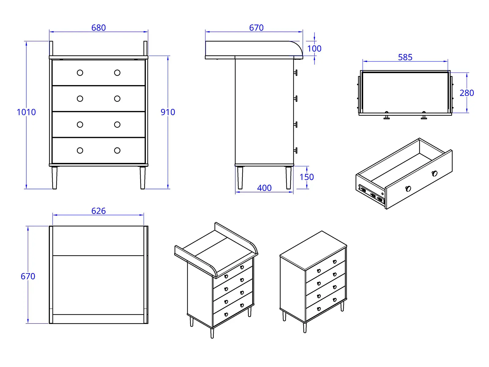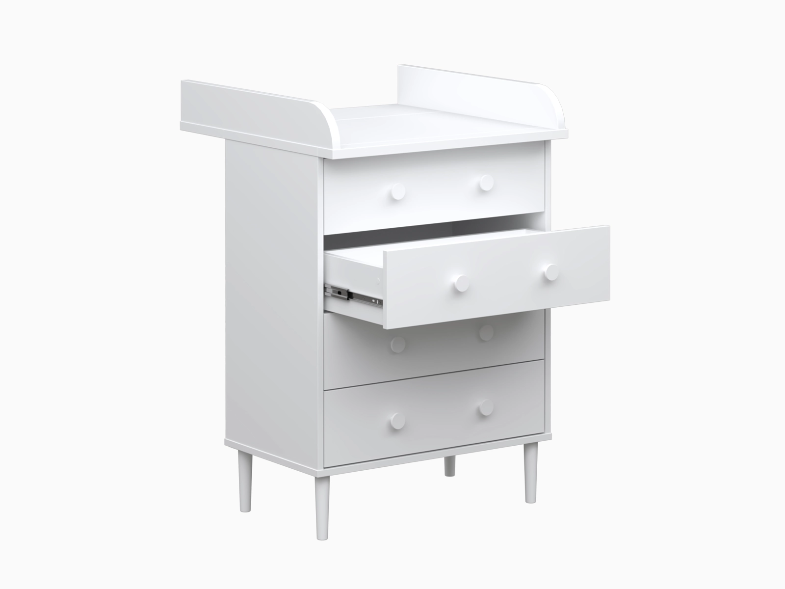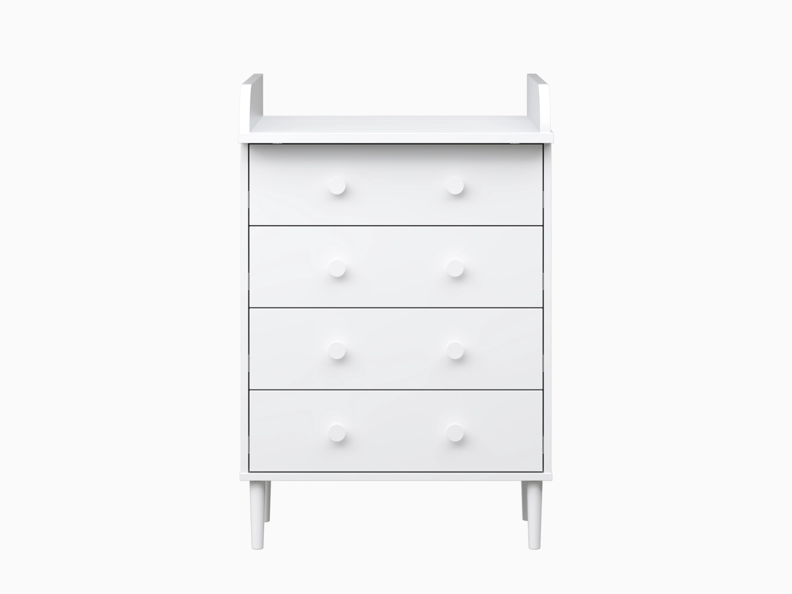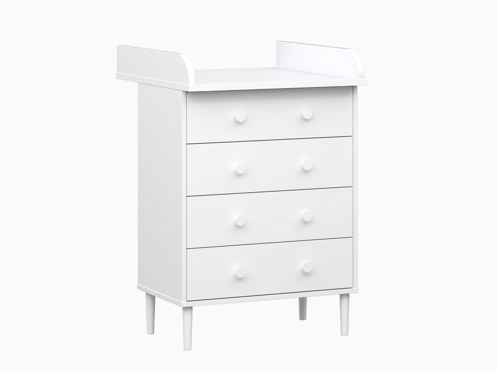 Kun hoitotasoa ei enää tarvita, sen voi irrottaa ja käyttöön jää siistin kokoinen nelilaatikkoinen lipasto. Ajaton muotoilu ja neutraali väritys tekevät siitä helposti sijoitettavan makuuhuoneeseen, eteiseen tai lastenhuoneeseen myös myöhemmin.