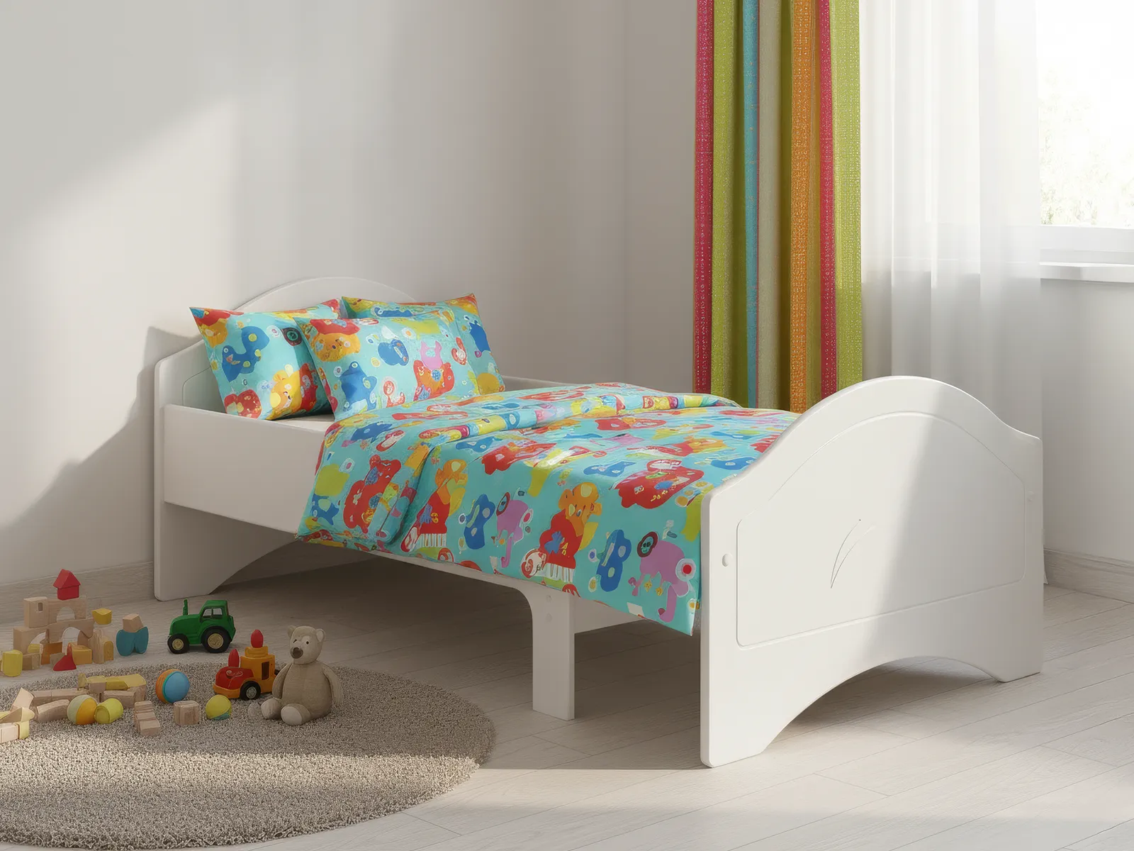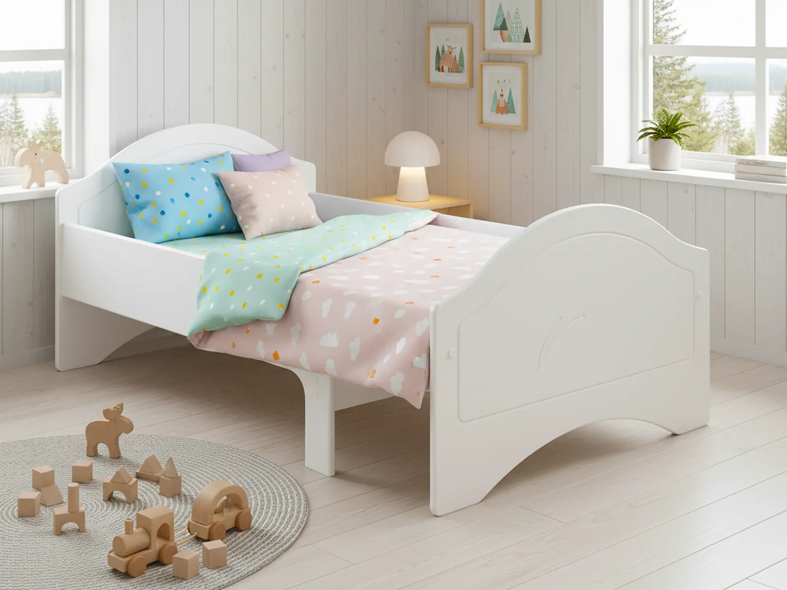 Sängyn runko on valmistettu korkealaatuisesta MDF-levystä ja maalattu valkoiseksi myrkyttömällä maalilla. Kaikki reunat ovat pyöristettyjä, joten sängyssä ei ole teräviä kulmia. Laidan korkeus pohjasta on 13–16 cm, mikä lisää turvallisuutta nukkuvalle lapselle.